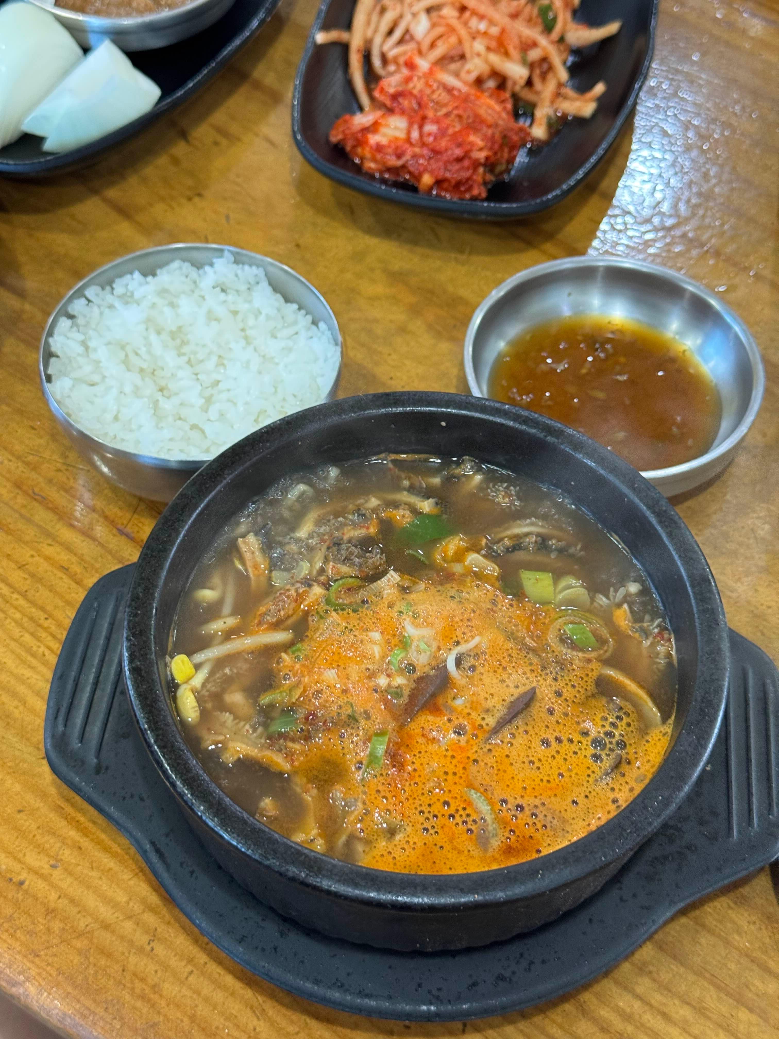 진한 한우 육수를 우린 국물에 양, 선지, 내장이 들어 있어서 진한 맛과 함께 속을 확실히 풀어주는 효과가 있습니다.