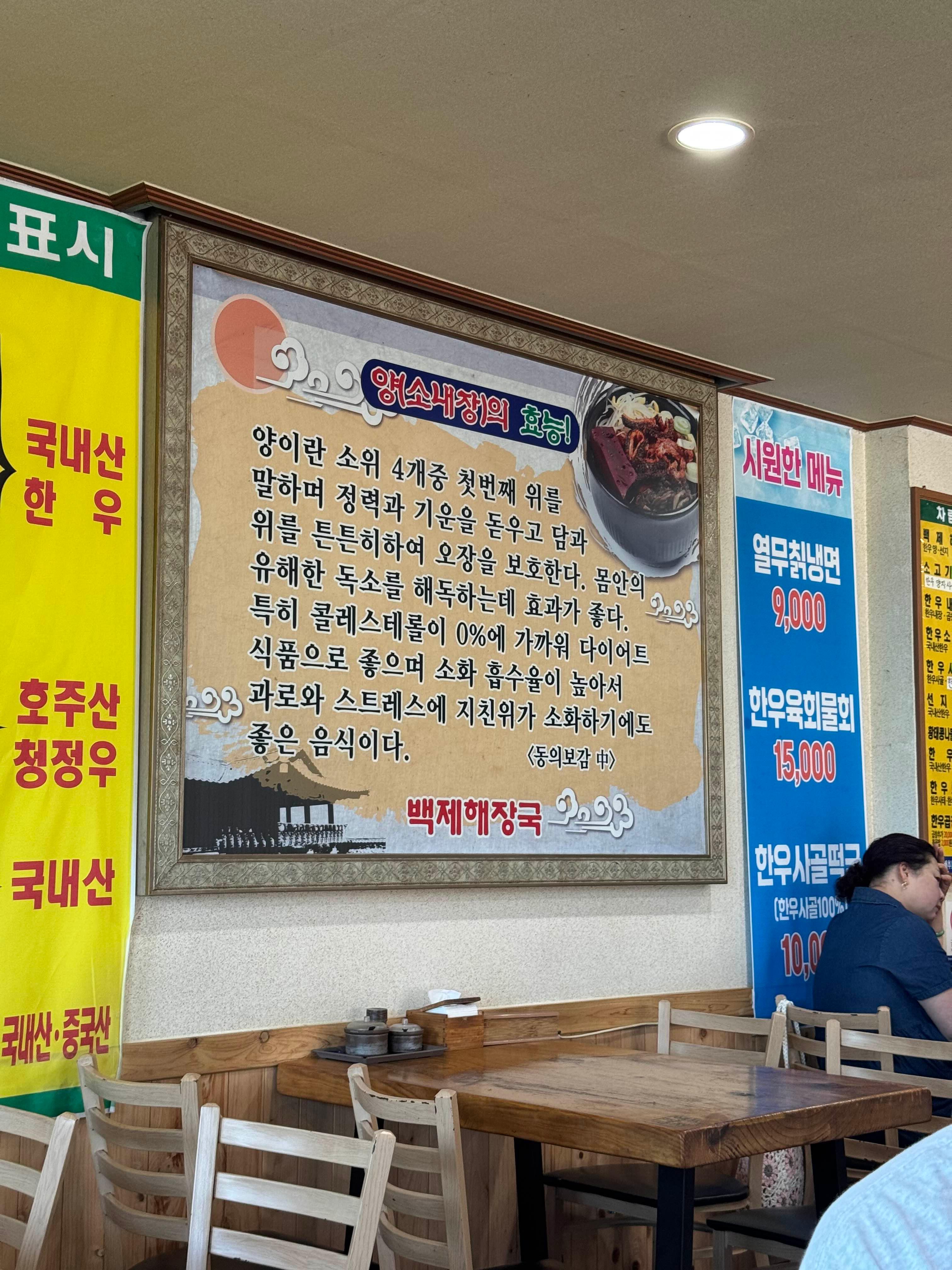 대표 메뉴인 백제해장국 외에도 선지해장국, 한우내장탕, 소고기해장국 등 다양한 해장국 메뉴를 준비하고 있습니다.